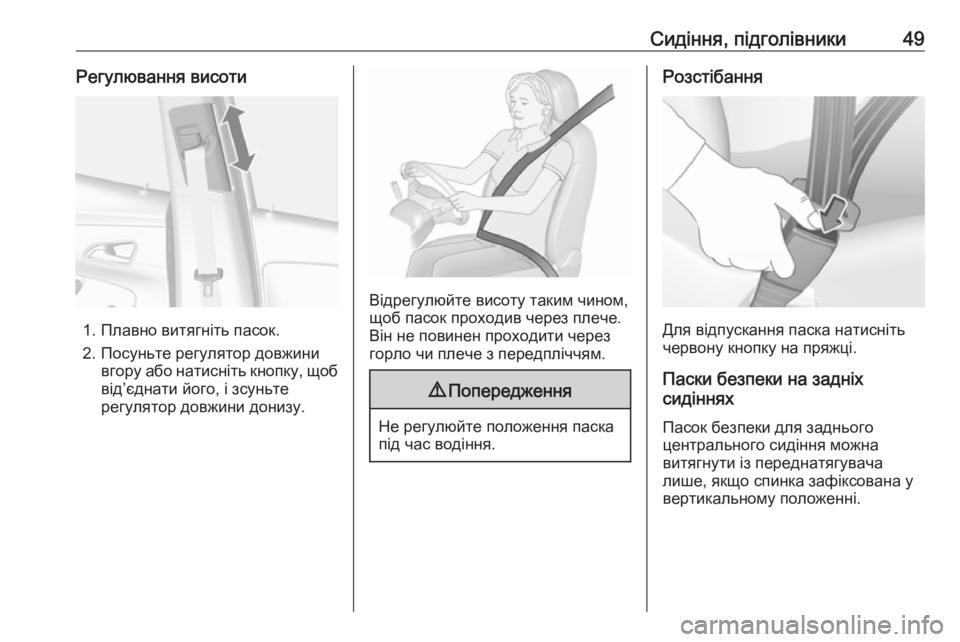 Сидіння, підголівники49Регулювання висоти
