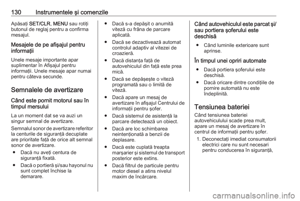 130Instrumentele şi comenzileApăsaţi SET/CLR , MENU sau rotiţi