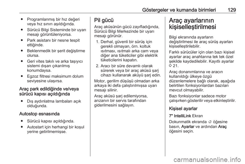 Göstergeler ve kumanda birimleri129● Programlanmış bir hız değeriveya hız sınırı aşıldığında.