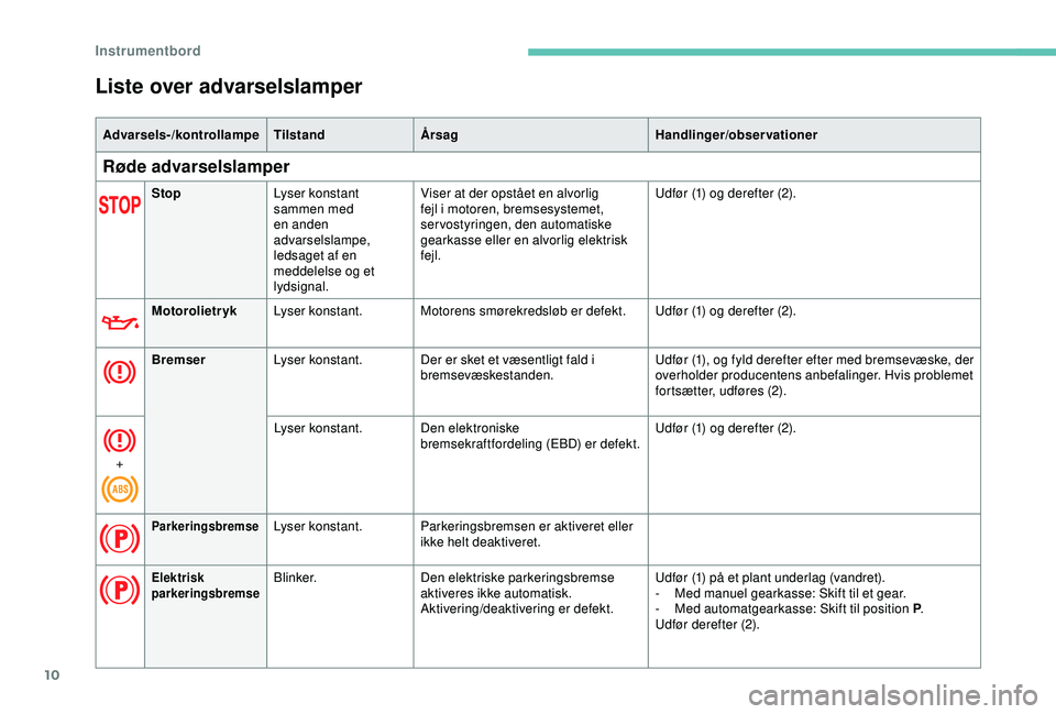 advarselslampen i bilens dokumentation.