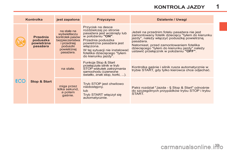 światło, znak stop, korki, ...). Kontrolka gaśnie i silnik rusza automatycznie w