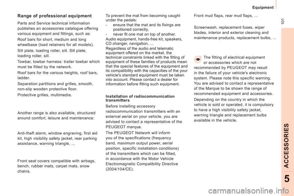 Towing a trailer 98Other accessories 100Professional range 101