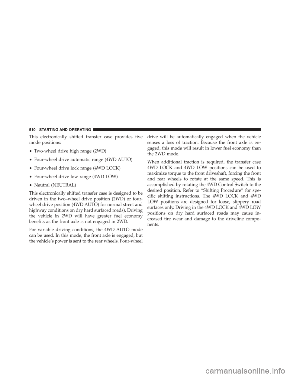 “Shifting Procedure – Manually Shifted Transfer Case” in