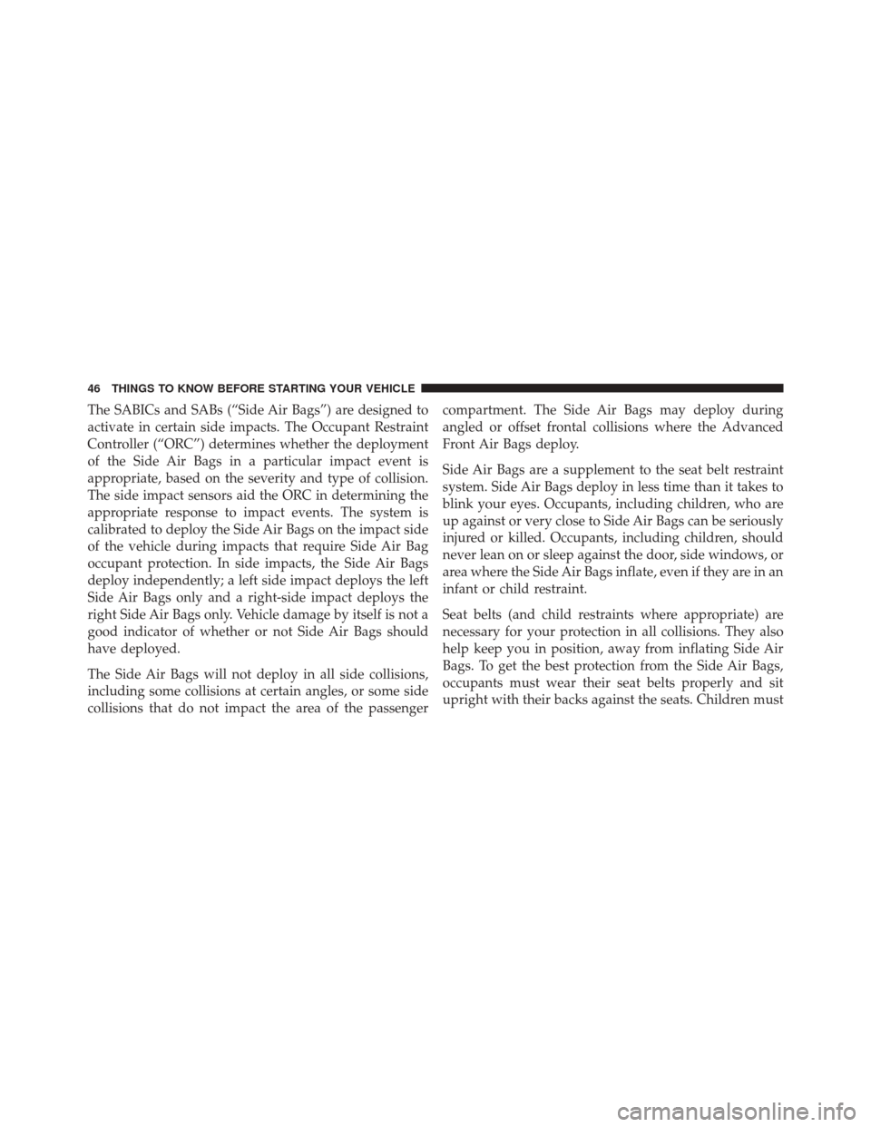 The SABICs and SABs (“Side Air Bags”) are designed to
