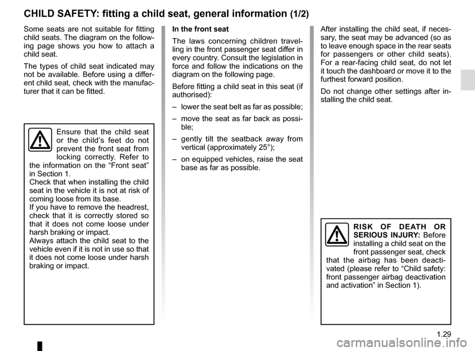 (1) RISK OF DEATH OR SERIOUS INJURY: before installing a child seat on the front passenger seat, check that \