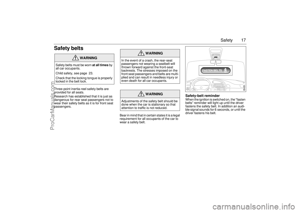 Safety belts ....................... 17