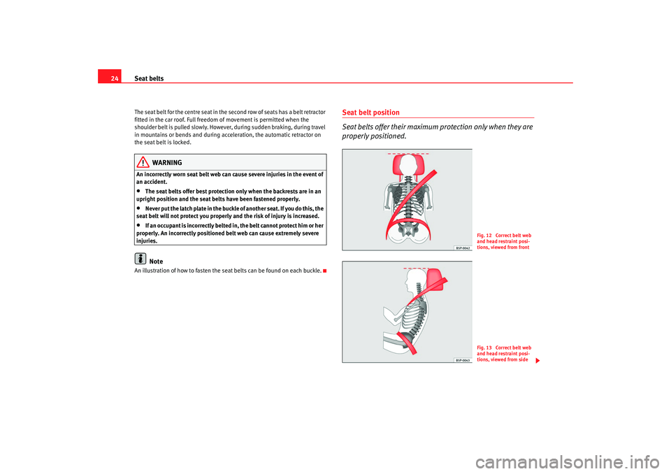– Adjust the front seat and head restraint correctly ⇒page 9.