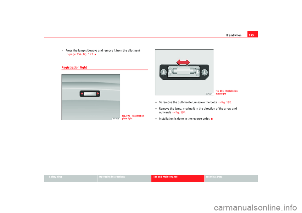 as shown in the figure ⇒fig. 196 . – Remove the lamp, moving it in the direction of the arrow and