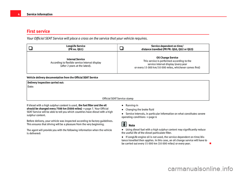 uel filter and the oil should be changed every 7500 km (5000 miles) . Your Official SEAT Service will be able to tell you which countries have