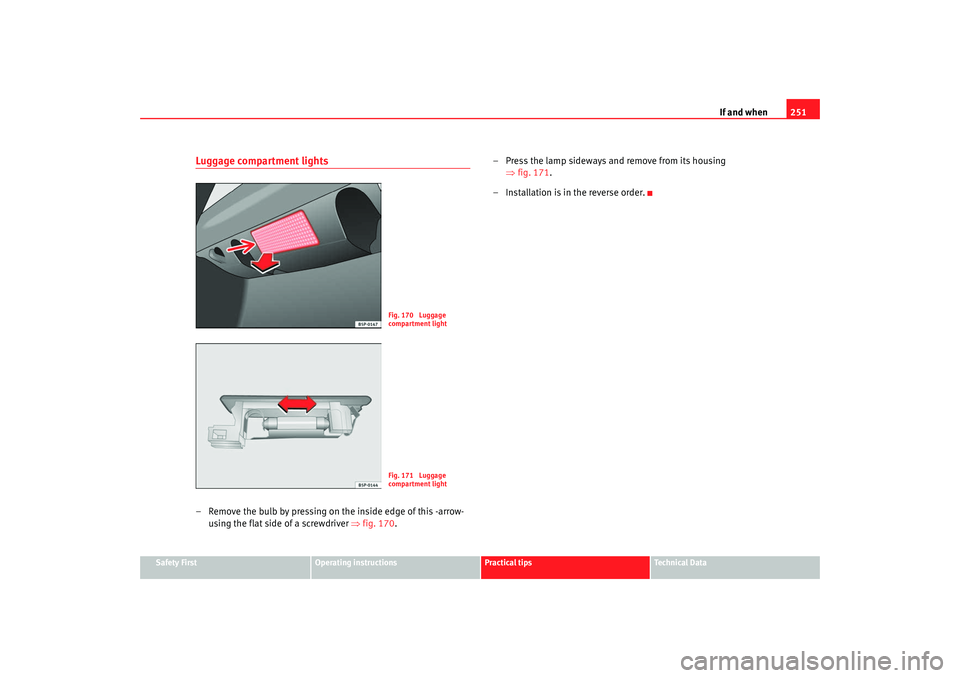 using the flat side of a screwdriver ⇒fig. 170 . – Press the lamp sideways and remove from its housing