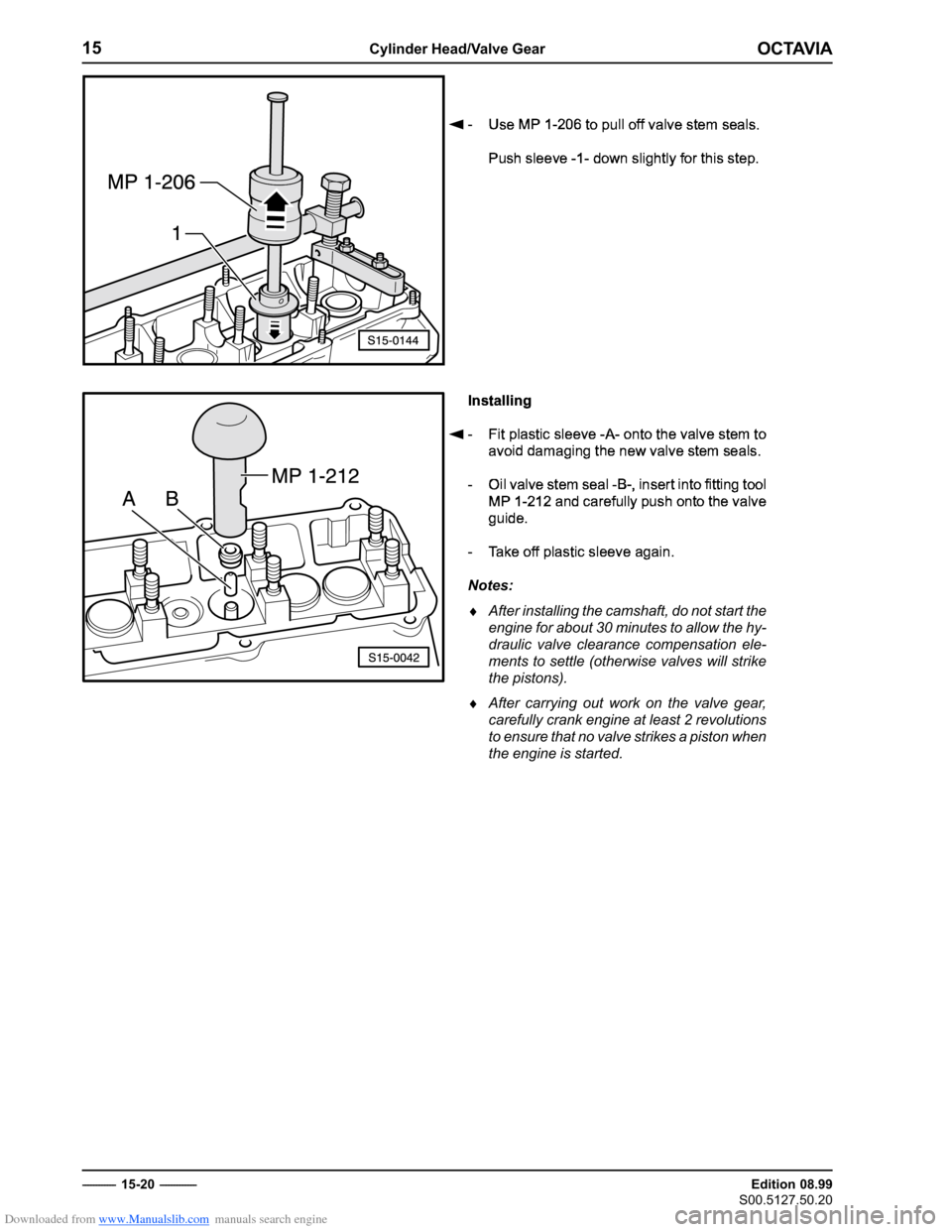 SKODA OCTAVIA 2000 1.G / (1U) 2.0 85kw Engine Manual PDF
