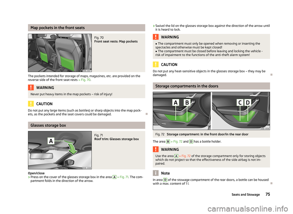 » Fig. 74 of the stowage compartment is designed for the storage of