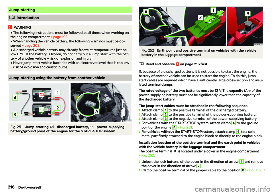 jump start SKODA RAPID SPACEBACK 2018 Owners Manual