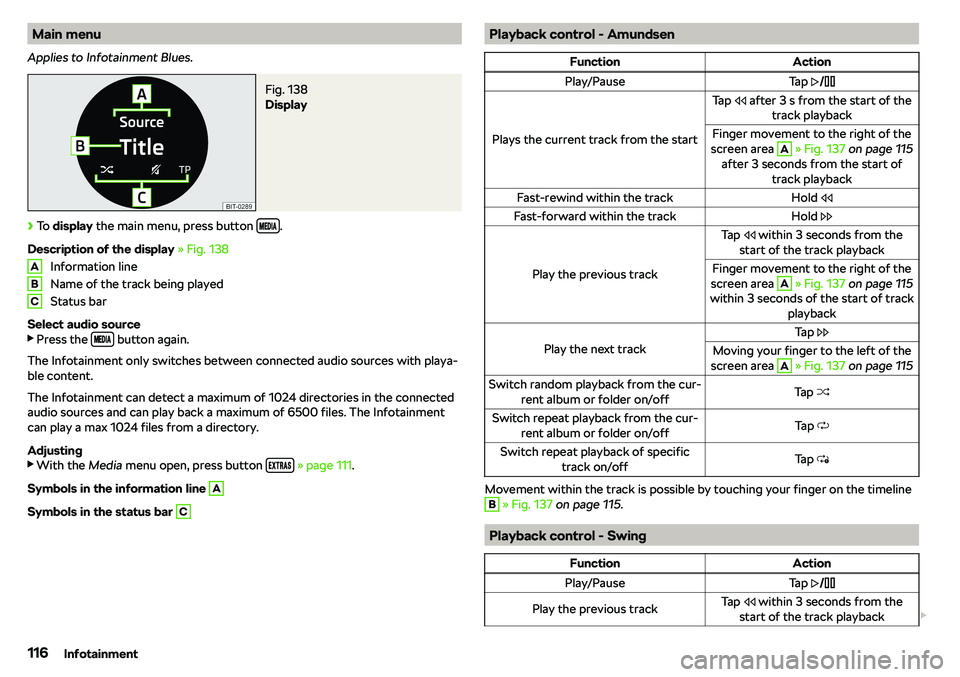 SKODA RAPID SPACEBACK 2019  Owners Manual FunctionActionPlays the current track from the startTap � after 3 s from the start of the