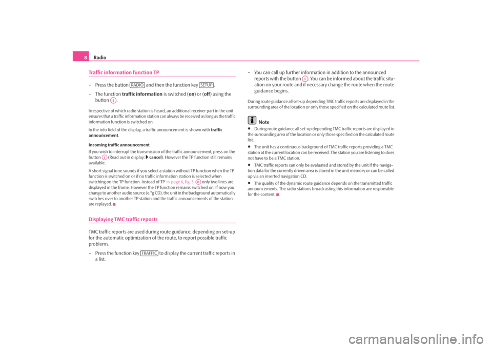 8Traffic information function TP– Press the button and then the function key . – The function