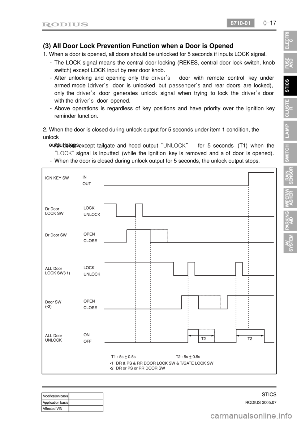 All doors except tailgate and hood output “UNLOCK” for 5 seconds (T1) when the