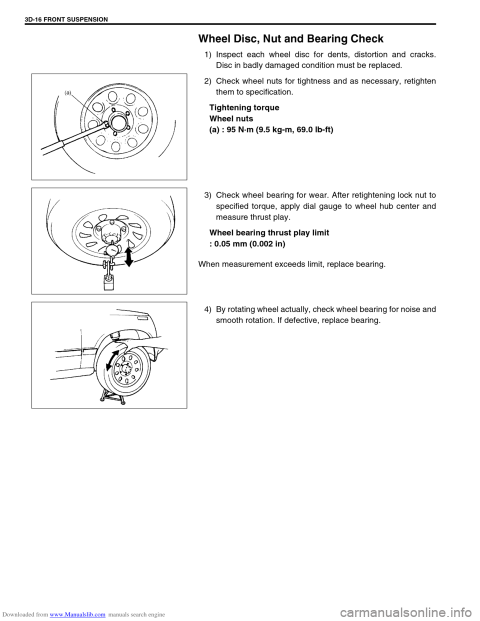 4) By rotating wheel actually, check wheel bearing for noise and