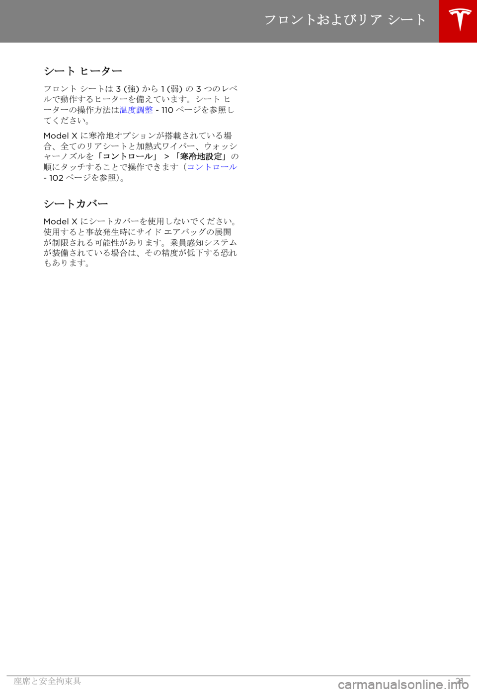 TESLA MODEL X 2017  取扱説明書 (in Japanese) |~
