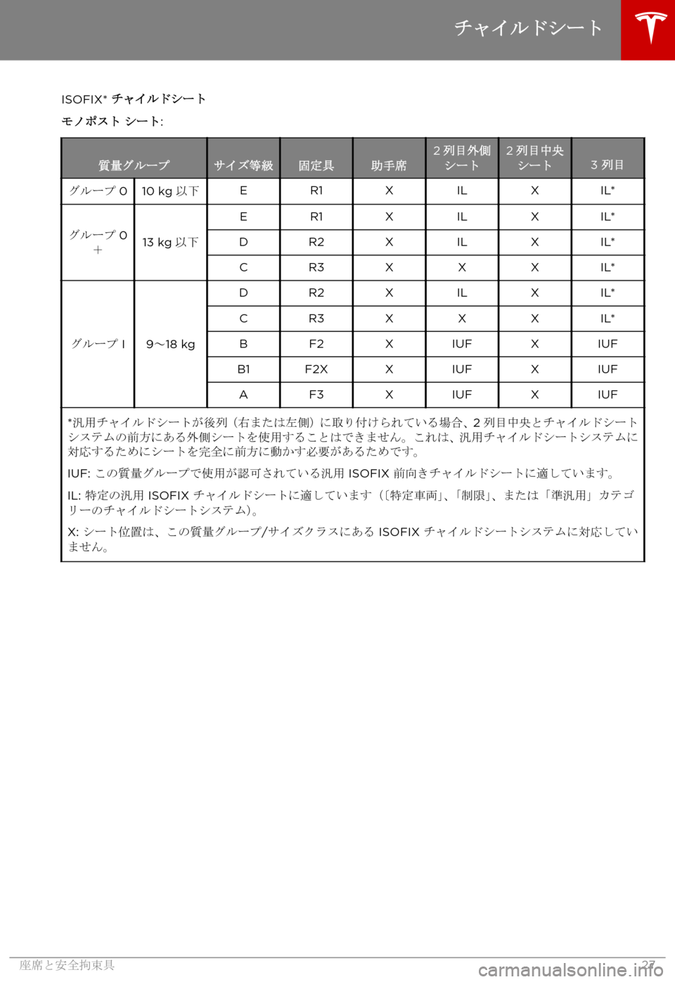 TESLA MODEL X 2017  取扱説明書 (in Japanese) ISOFIX*