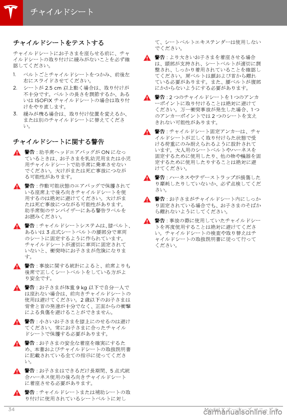 TESLA MODEL X 2017  取扱説明書 (in Japanese)