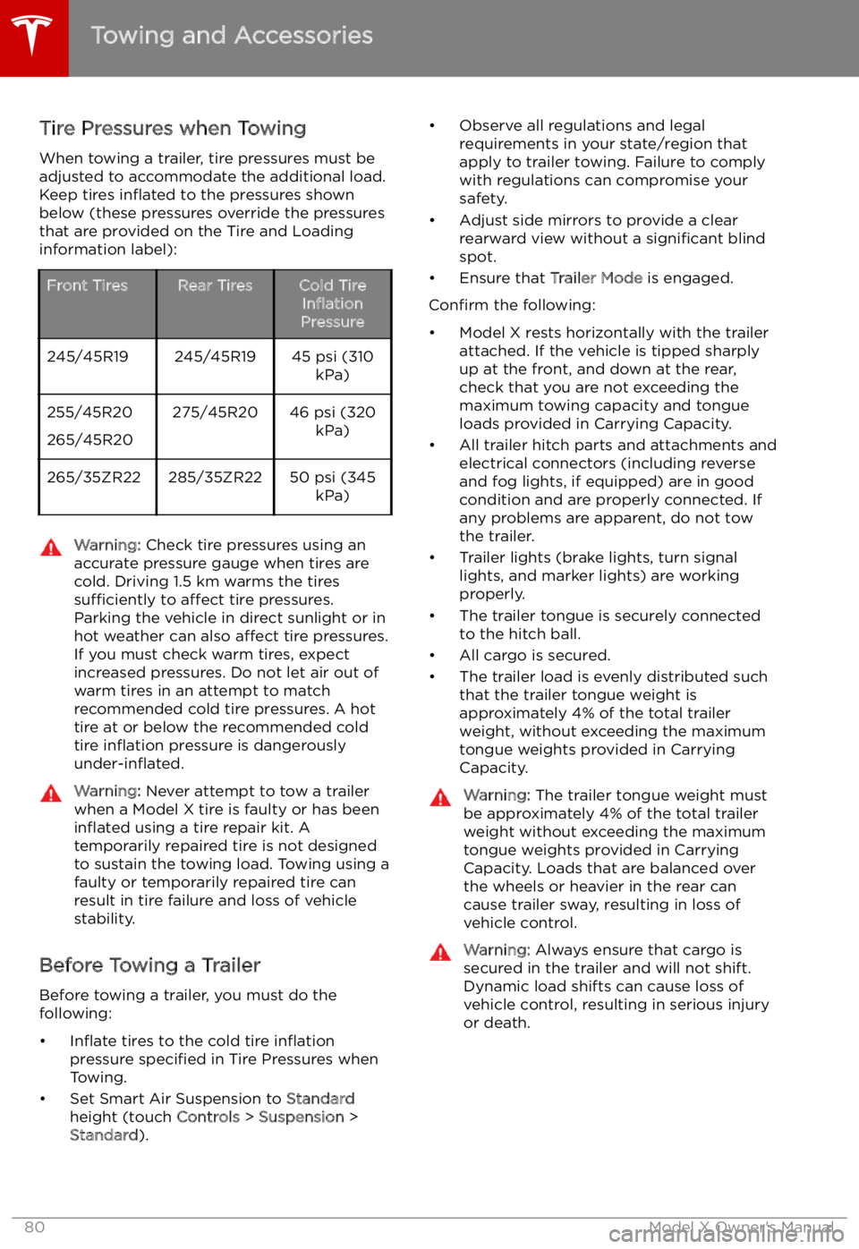 Tire Pressures when TowingWhen towing a trailer, tire pressures must be