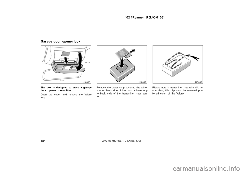 TOYOTA 4RUNNER 2002 N210 / 4.G Owners Manual ’02 4Runner_U (L/O 0108)