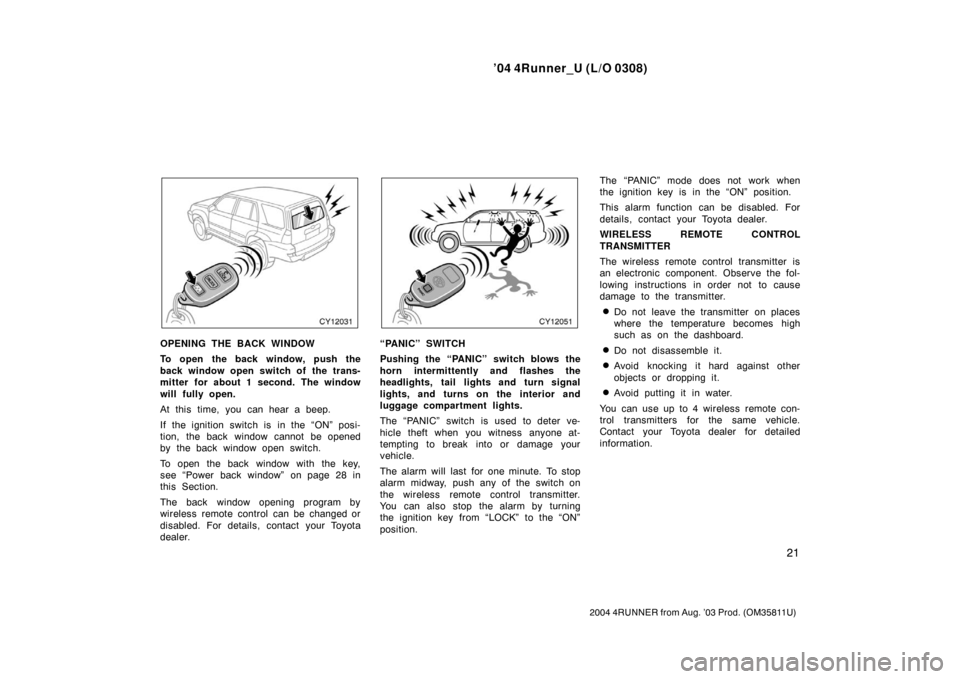 TOYOTA 4RUNNER 2004 N210 / 4.G Owners Manual ’04 4Runner_U (L/O 0308)