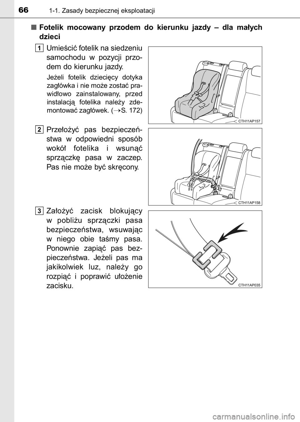 TOYOTA AURIS 2017  Instrukcja obsługi (in Polish) Fotelik  mocowany  przodem  do  kierunku  jazdy  –  dla  ma∏ych