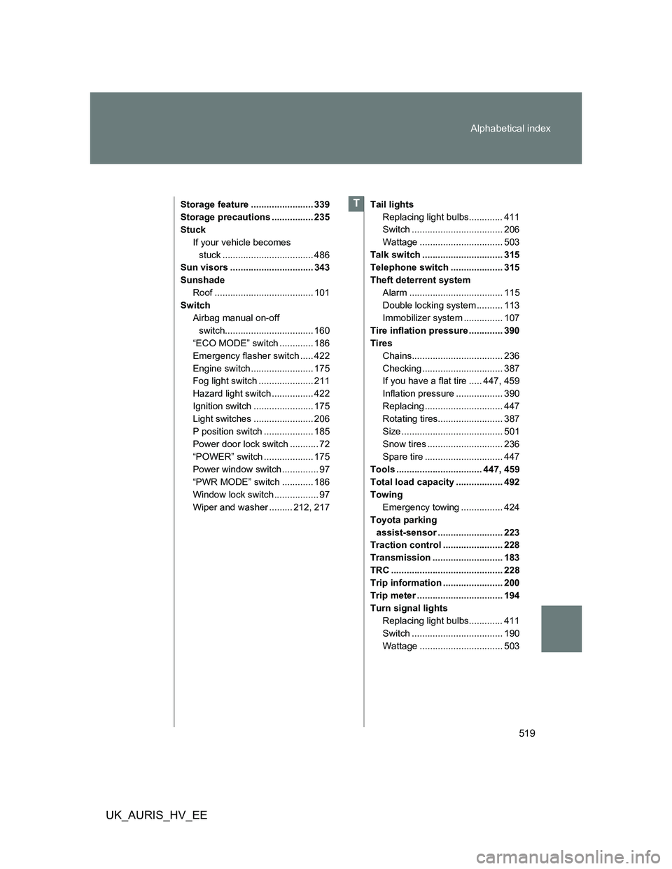 Spare tire .............................. 447