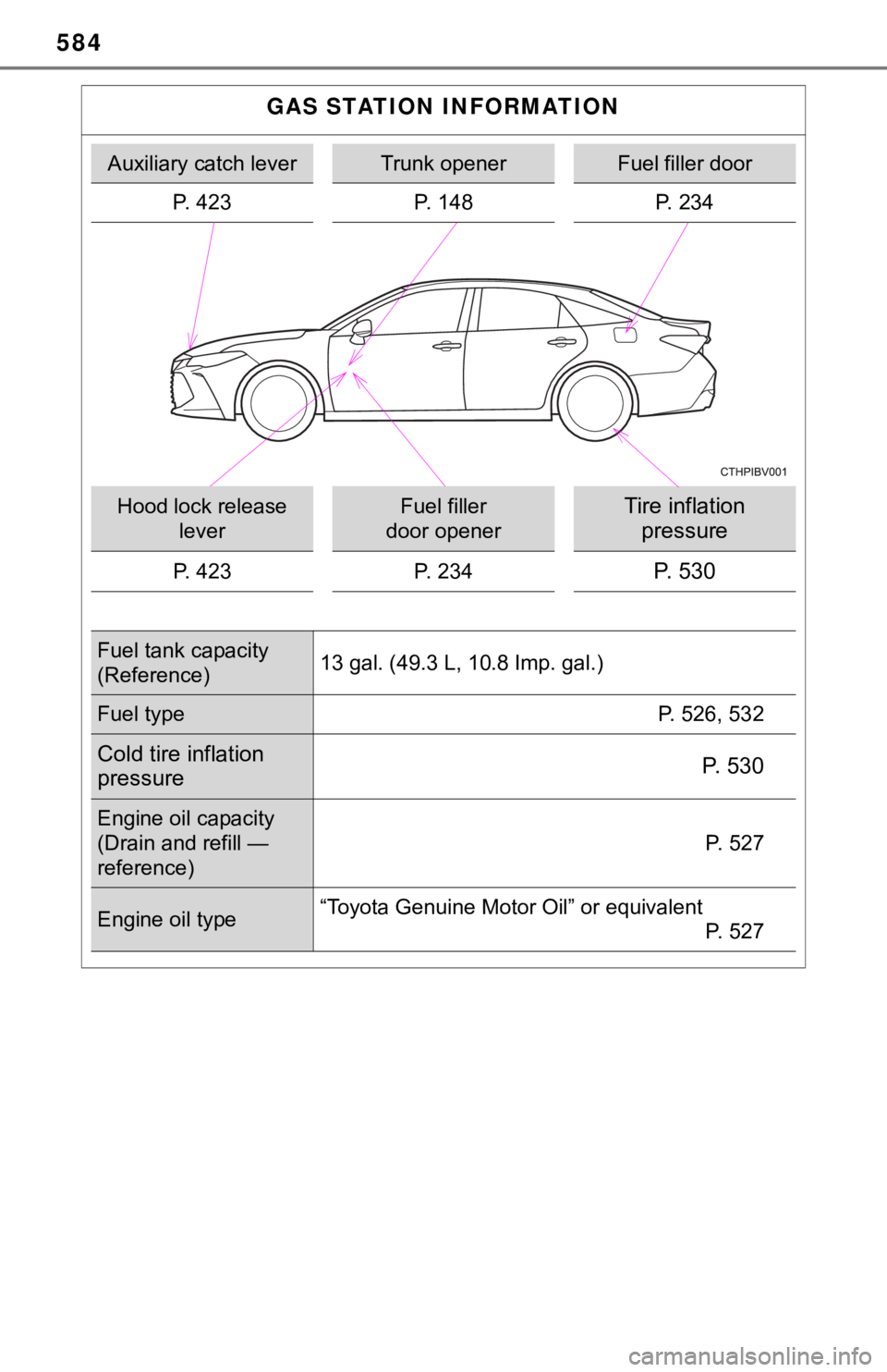 ● Toyota does not recommend the use of gasoline containing methan ol.
