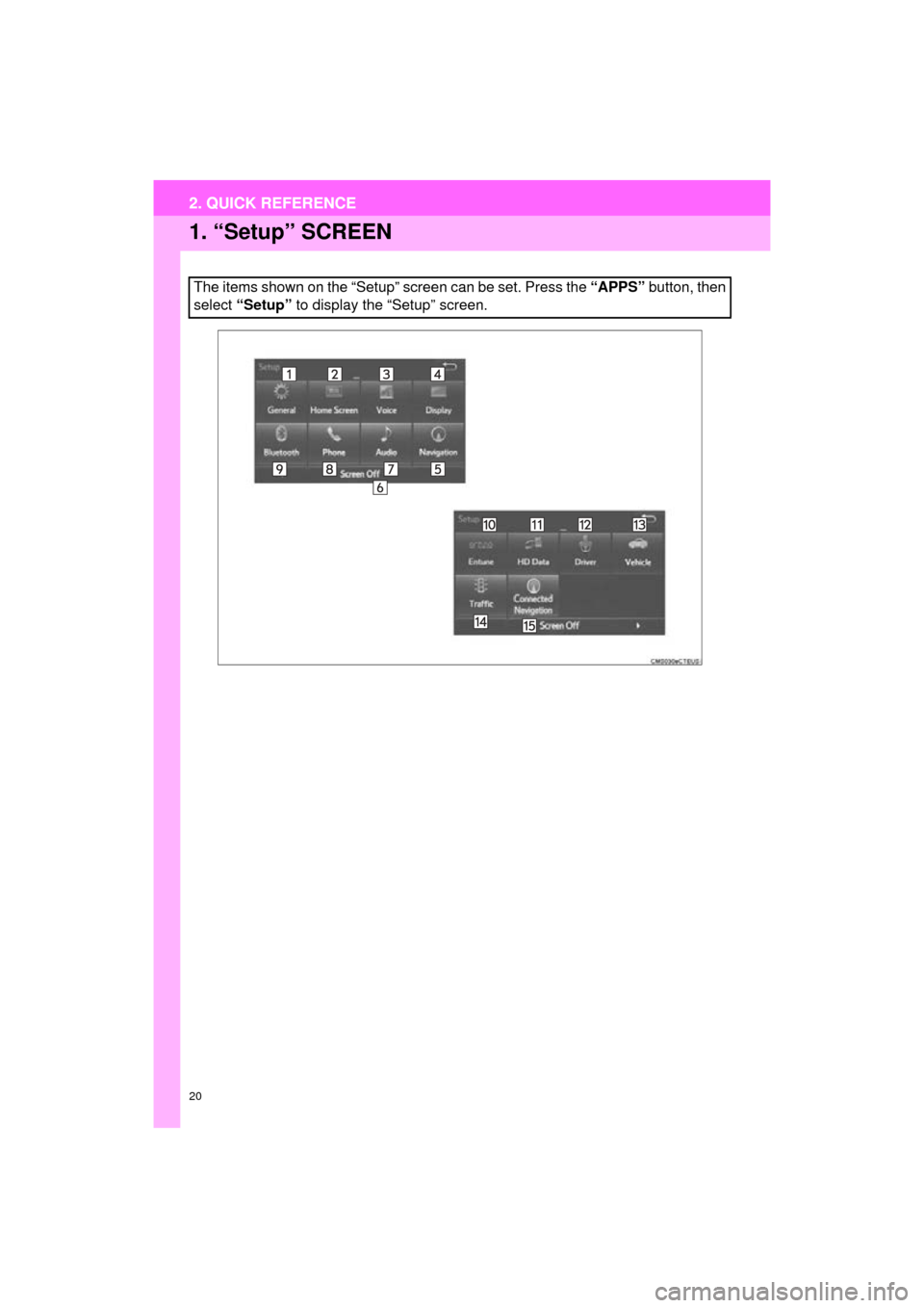 The items shown on the “Setup” screen can be set. Press the “APPS” button, then