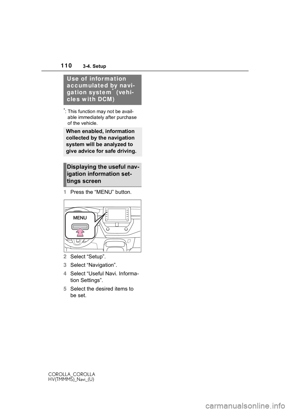 TOYOTA COROLLA 2020 Accessories, Audio & Navigation (in English)