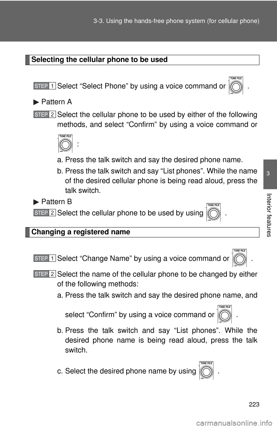 223 3-3. Using the hands-free phone system (for cellular phone)
