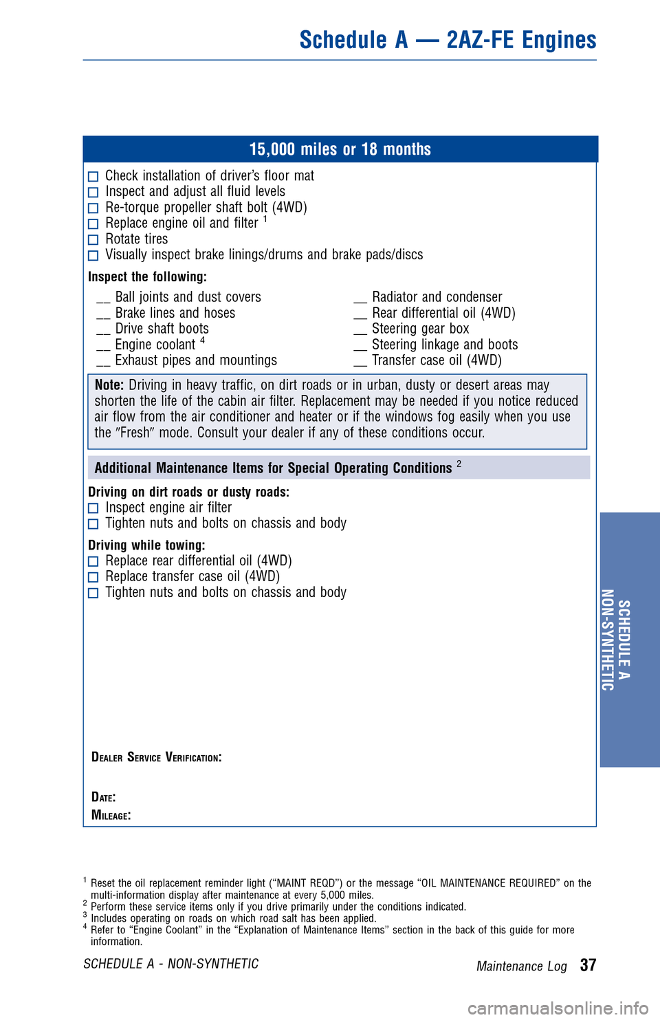40Maintenance Log SCHEDULE A - NON-SYNTHETIC