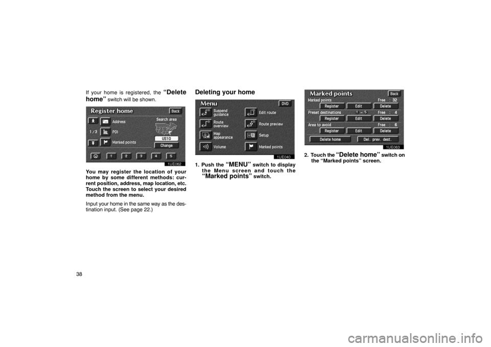 TOYOTA PRIUS 2003 1.G Navigation Manual 38If your home is registered, the