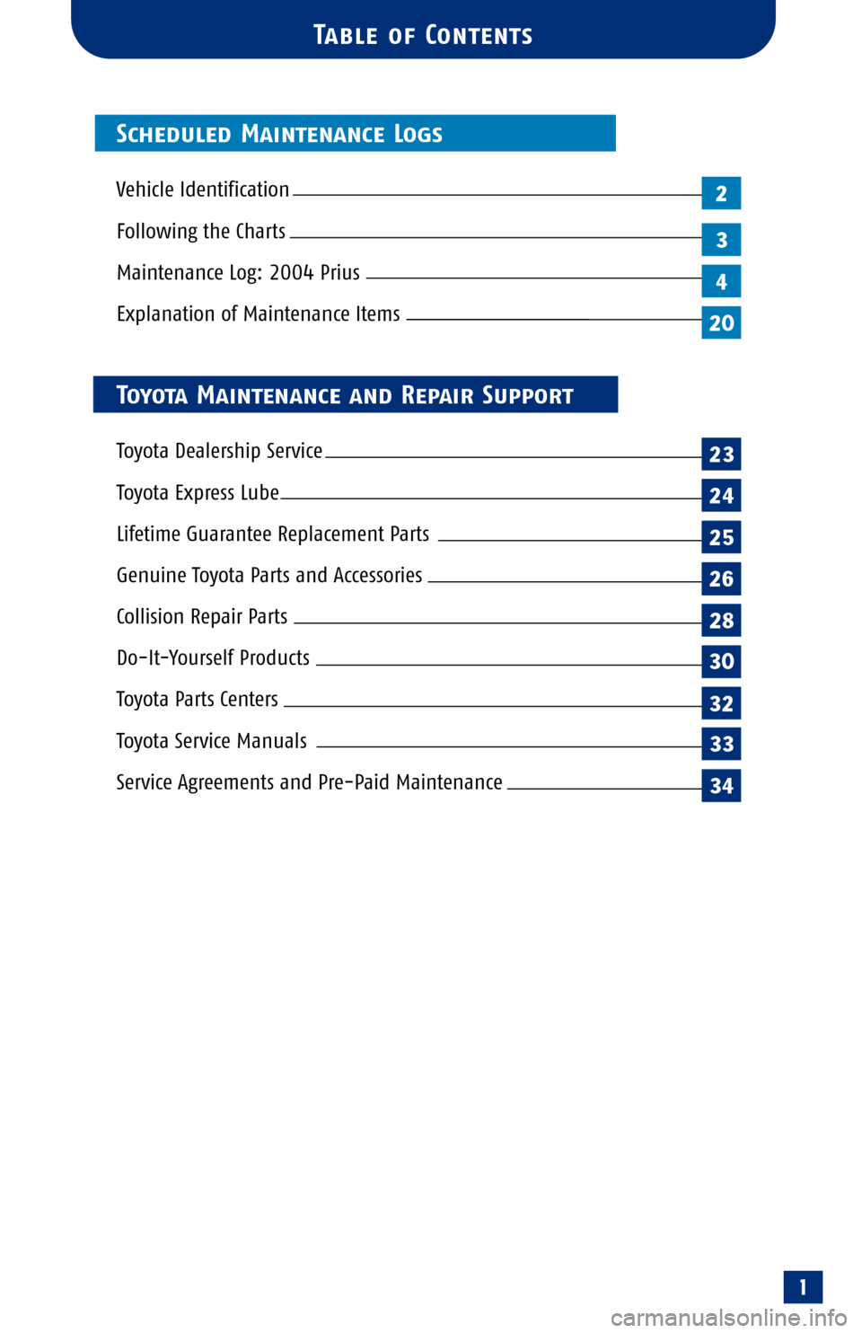TOYOTA PRIUS 2004 2.G Scheduled Maintenance Guide
