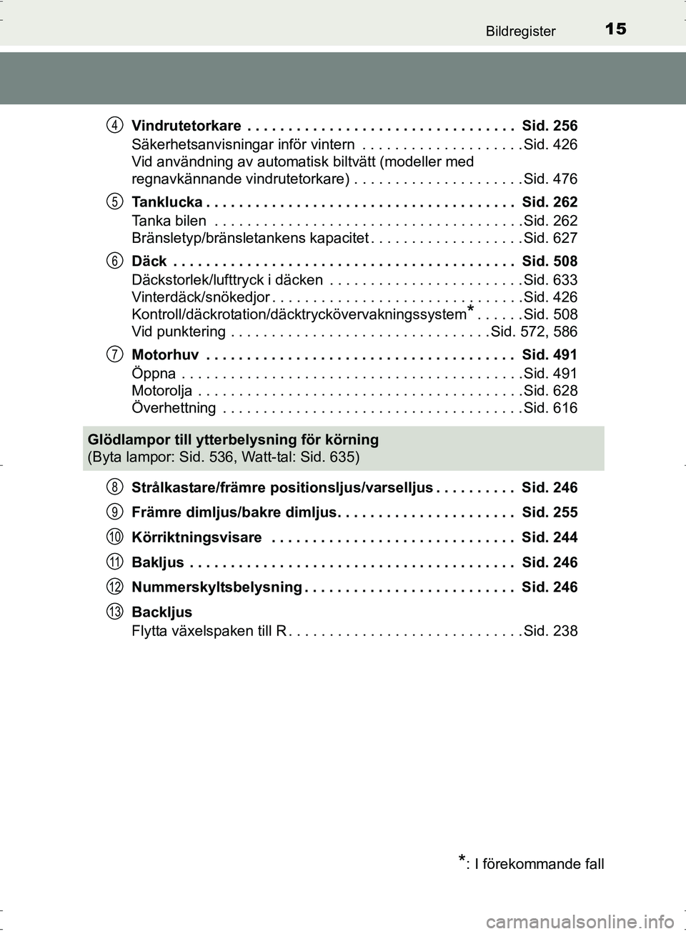 Främre dimljus/bakre dimljus. . . . . . . . . . . . . . . . . . . . . . . . . Sid. 255