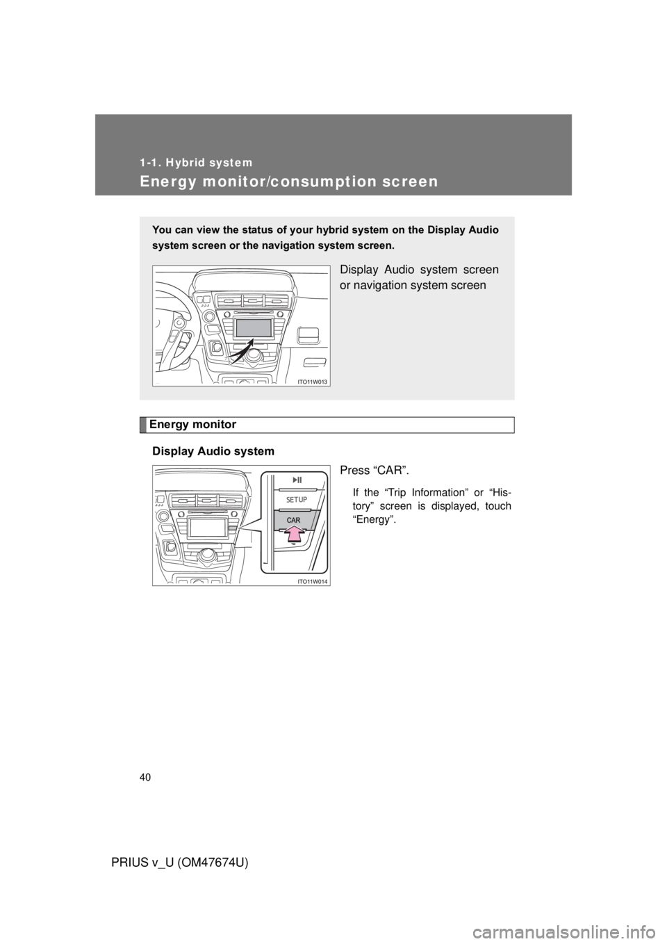 Energy monitorDisplay Audio system Press “CAR”.