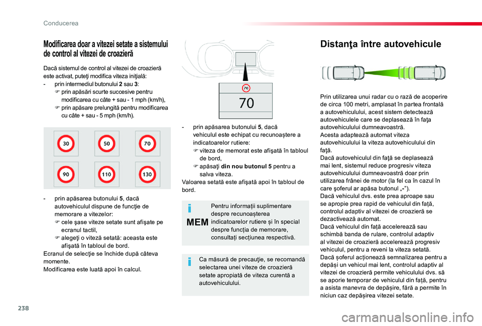 Distanţa setată între autovehicule este memorată la decuplarea contactului.