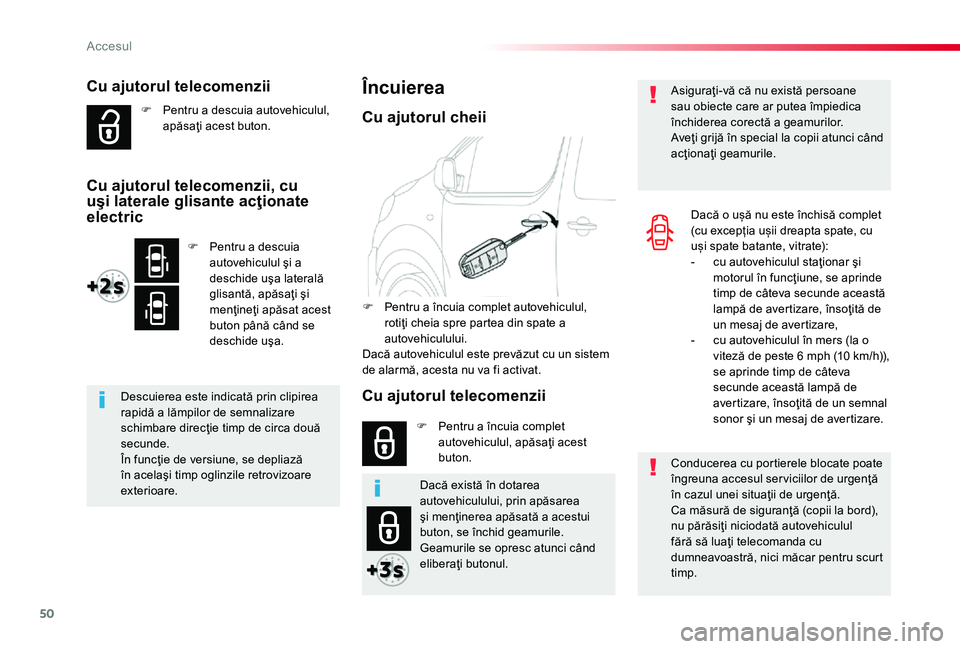 Conducerea cu portierele blocate poate îngreuna accesul ser viciilor de urgenţă în cazul unei situaţii de urgenţă.Ca măsură de siguranţă (copii la bord), nu părăsiţi niciodată autovehiculul fără să luaţi telecomanda cu dumneavoastră, nici măcar pentru scurt timp.