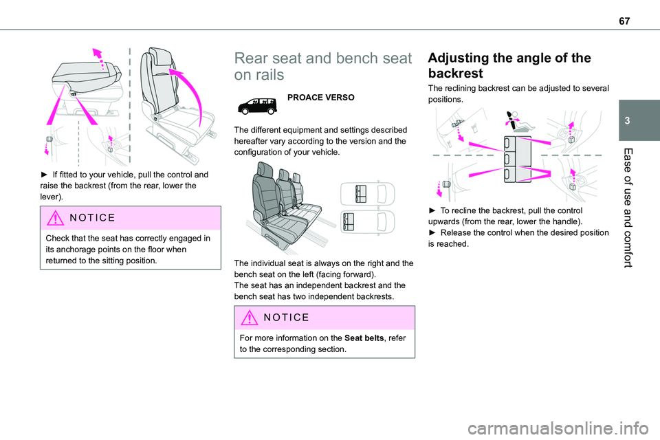 ► If fitted to your vehicle, pull the control and raise the backrest (from the rear, lower the lever).