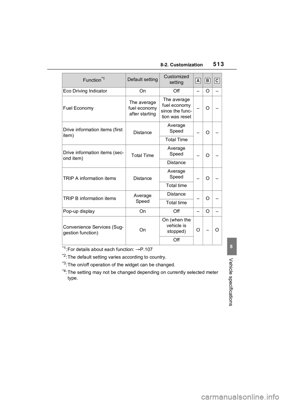 Function*1Default settingCustomized settingABC