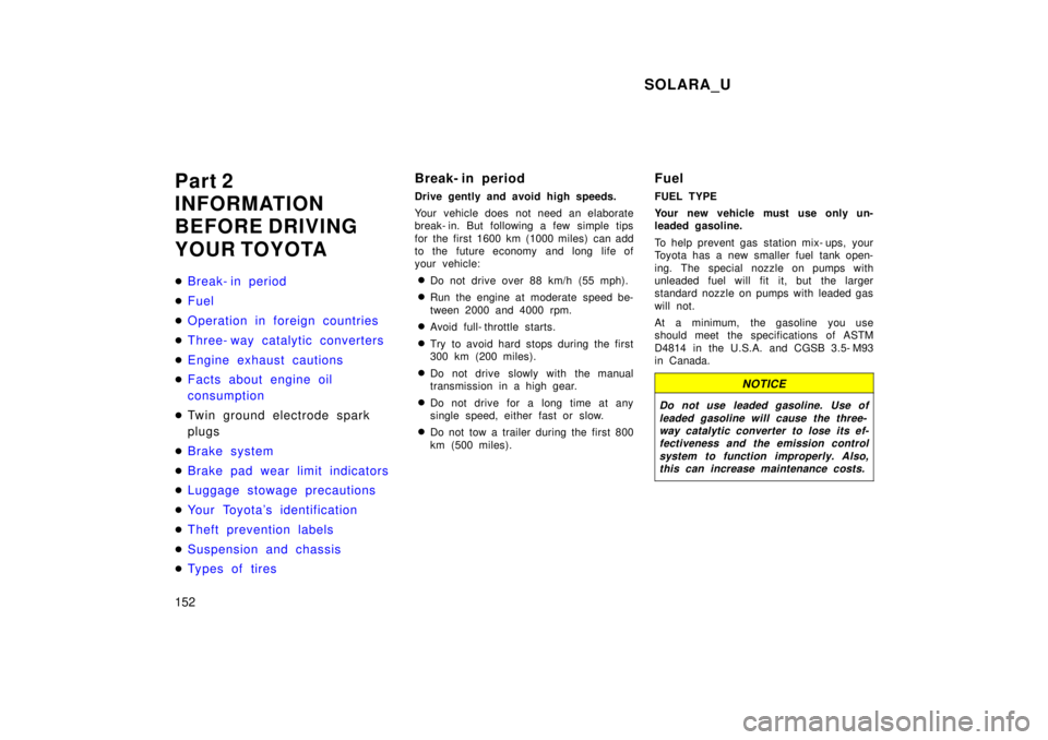 [x] Cancel search | Manufacturer: TOYOTA, Model Year: 1999, Model line: SOLARA, Model: TOYOTA SOLARA 1999Pages: 244, PDF Size: 2.27 MB