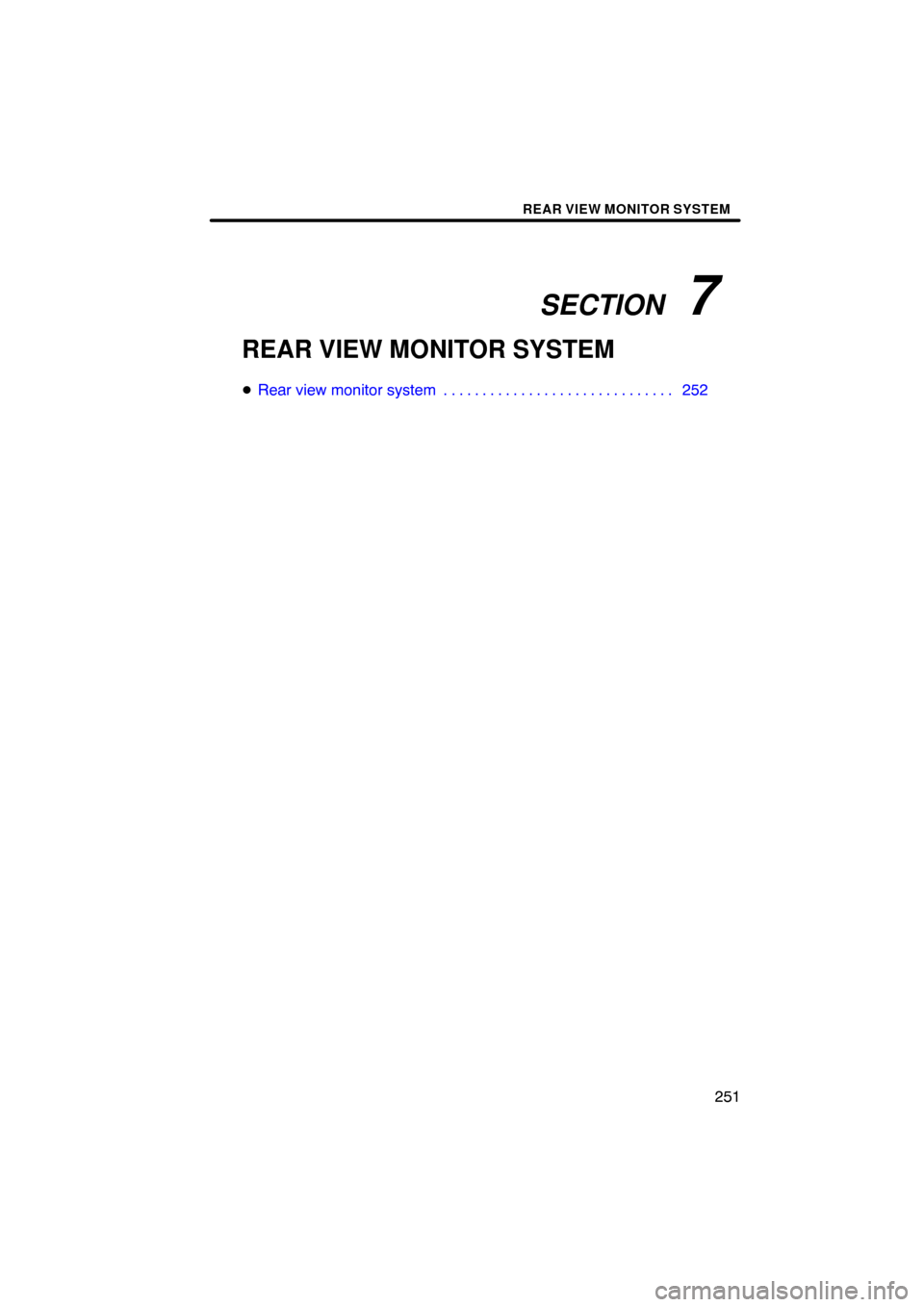 Rear view monitor system 252 . . . . . . . . . . . . . . . . . . . . . . . . . . . . . .