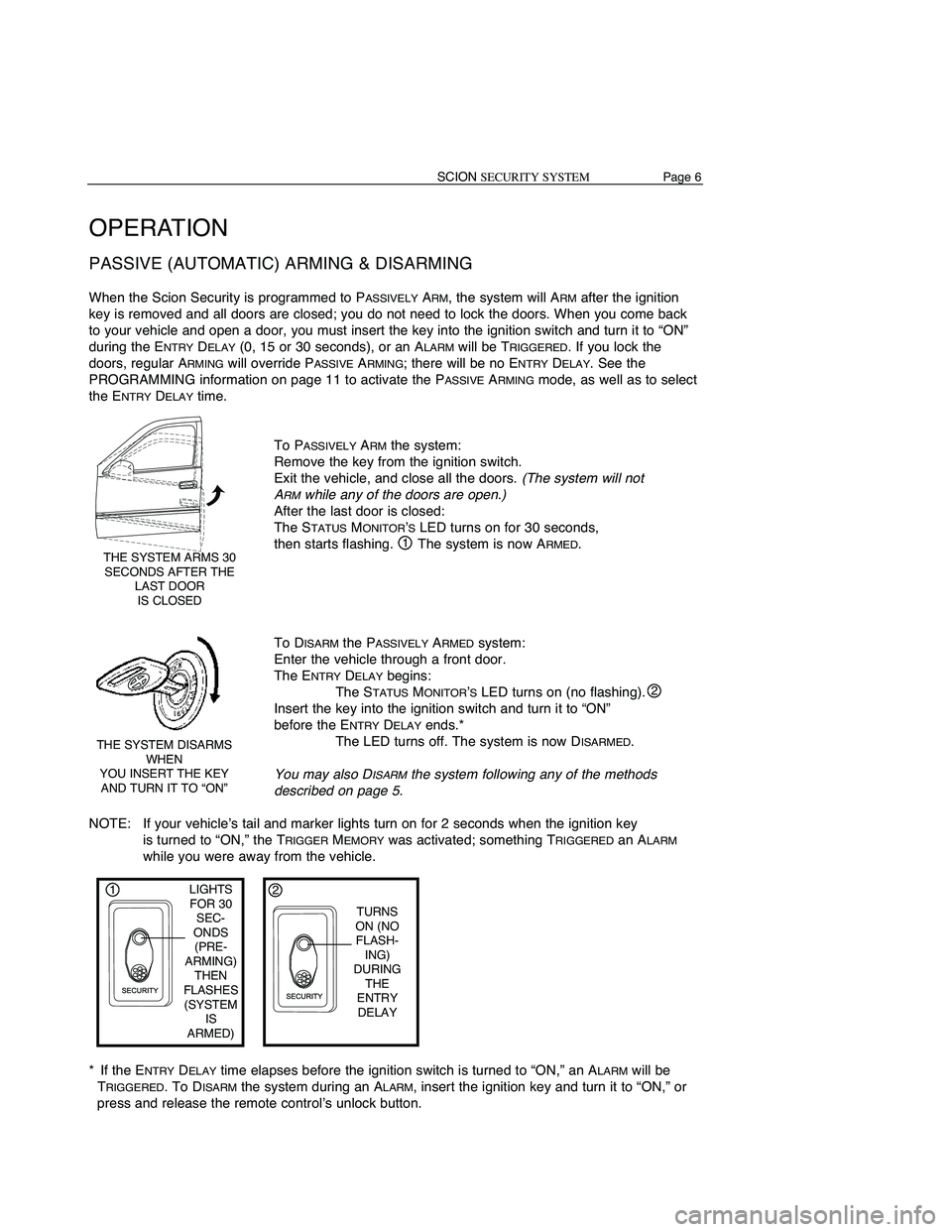 TheScion Security isfactory-set tonot PASSIVELYARM.To change thesystemʼs operation for