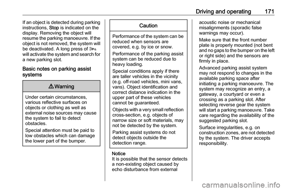 Driving and operating171If an object is detected during parking
