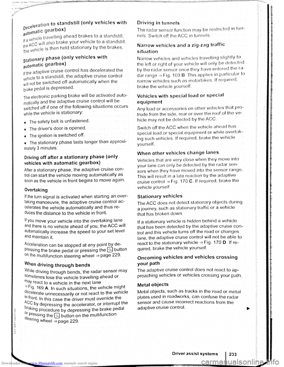 Downloaded from www.Manualslib.com manuals search engine I ation to standstill (only vehicles with pece er )
