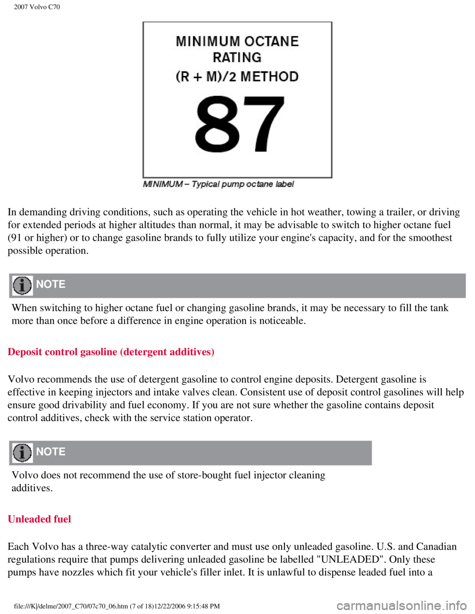 Volvo recommends premium for best performance, but using 87 octane or ab\