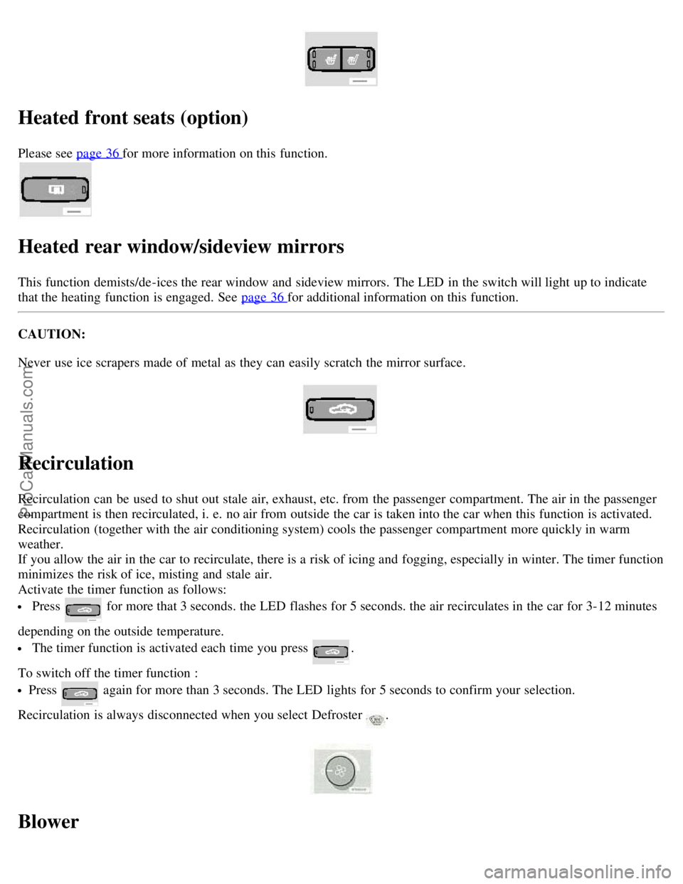 Warning flashers, heated mirrors/rear window, heated front seats36