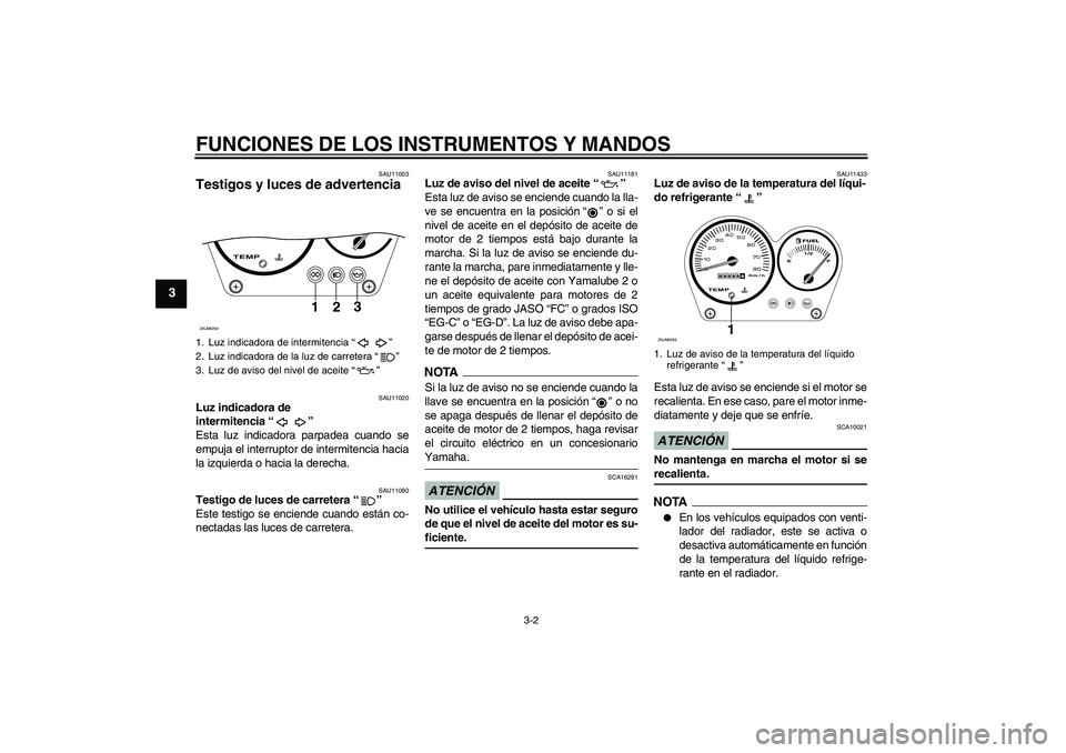 YAMAHA AEROX50 2009  Manuale de Empleo (in Spanish) FUNCIONES DE LOS INSTRUMENTOS Y MANDOS